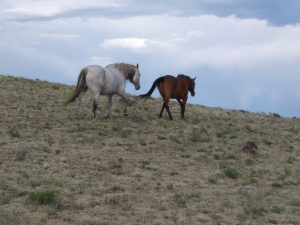 We had to put Sweet Moondo down seven months after I wrote this passage, and I’m sorry to report that our boy Jake is no longer with us, either. Revisiting that note gave me a chance to think of them, and to wonder anew at their relationship. It’s still common to think in terms of hierarchical herd dynamics when it comes to horses; I know better, but still catch myself doing so regularly. To characterize Jake as “dominant” because he could (and invariably would) steal Moondo’s grain and push him off a hay pile ignores the nuances in their interactions. Moondo was one of the least food-motivated horses I’ve ever known, while Jake was a bully around all things edible. Yet when something put Moondo on alert and he refused to leave the perceived safety of the Big Pasture and its long sightlines, Jake stayed. He neither tried to harass his companion toward dinner nor left him for it.